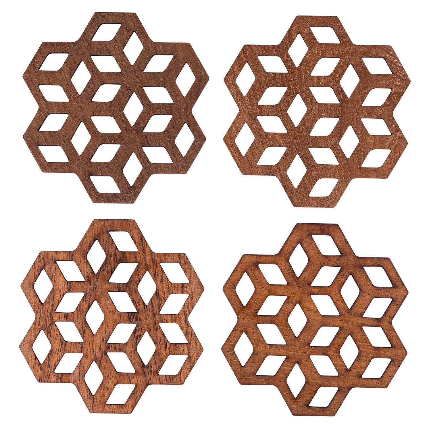 Cubix Geometric Upcycled Teak Wood Coasters - Set of 2 or 4