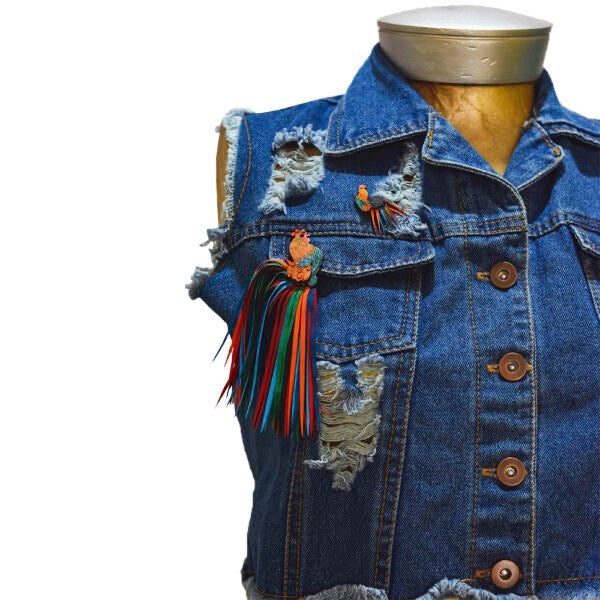 Bring a touch of vibrant charm and artisan flair to your wardrobe with this Rooster Totumo Brooch. Bold, colorful, and handcrafted in Colombia, this statement accessory transforms natural totumo (dried calabash shell) into a unique wearable piece of art. Perfect for adding personality to jackets, coats, scarves, bags, or dresses.