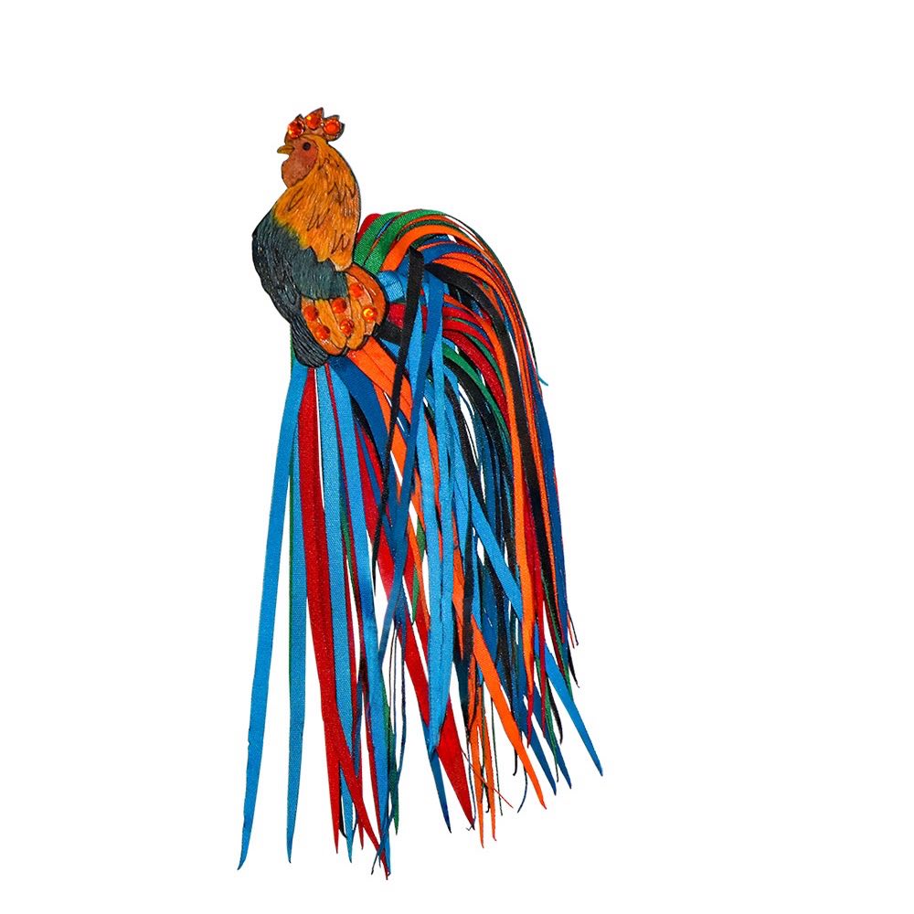 The rooster symbolizes confidence, awakening, and energy. This brooch captures that spirit with intricate hand-carved detailing and layered natural fabrics, giving texture, depth, and lively color. A playful yet elegant accessory, it’s perfect for statement styling and is sure to turn heads.