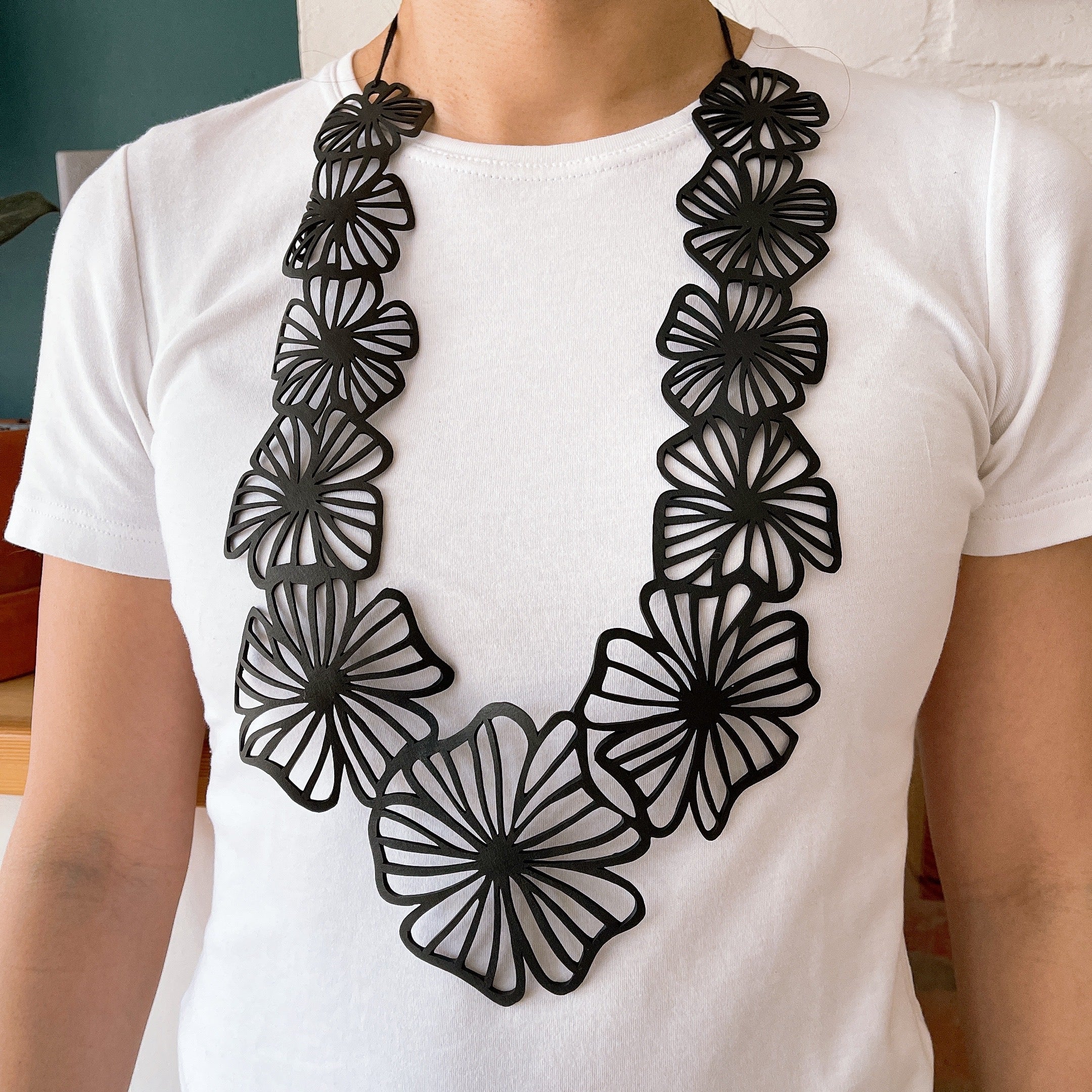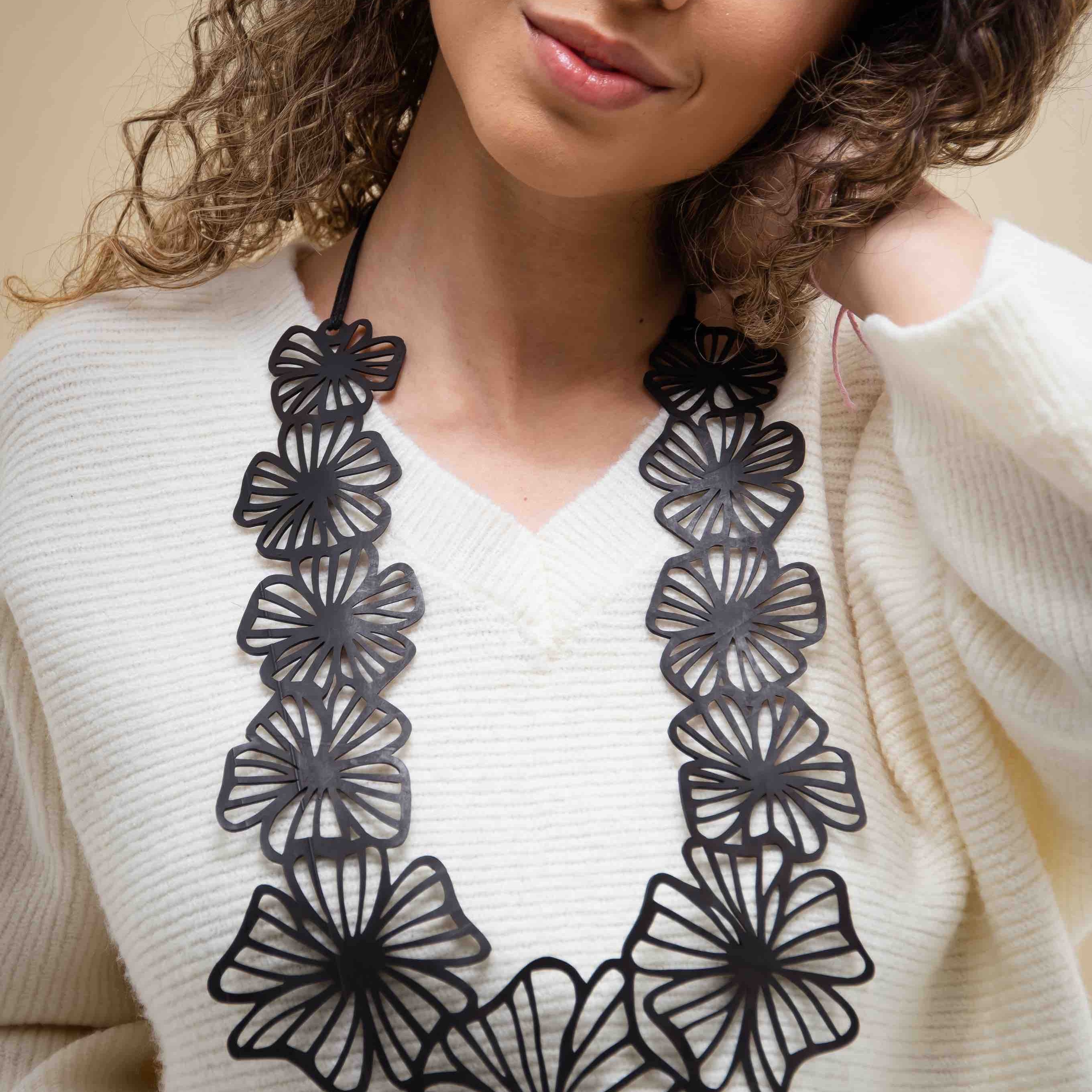 Canna Handmade Long Floral Necklace by Paguro Upcycle