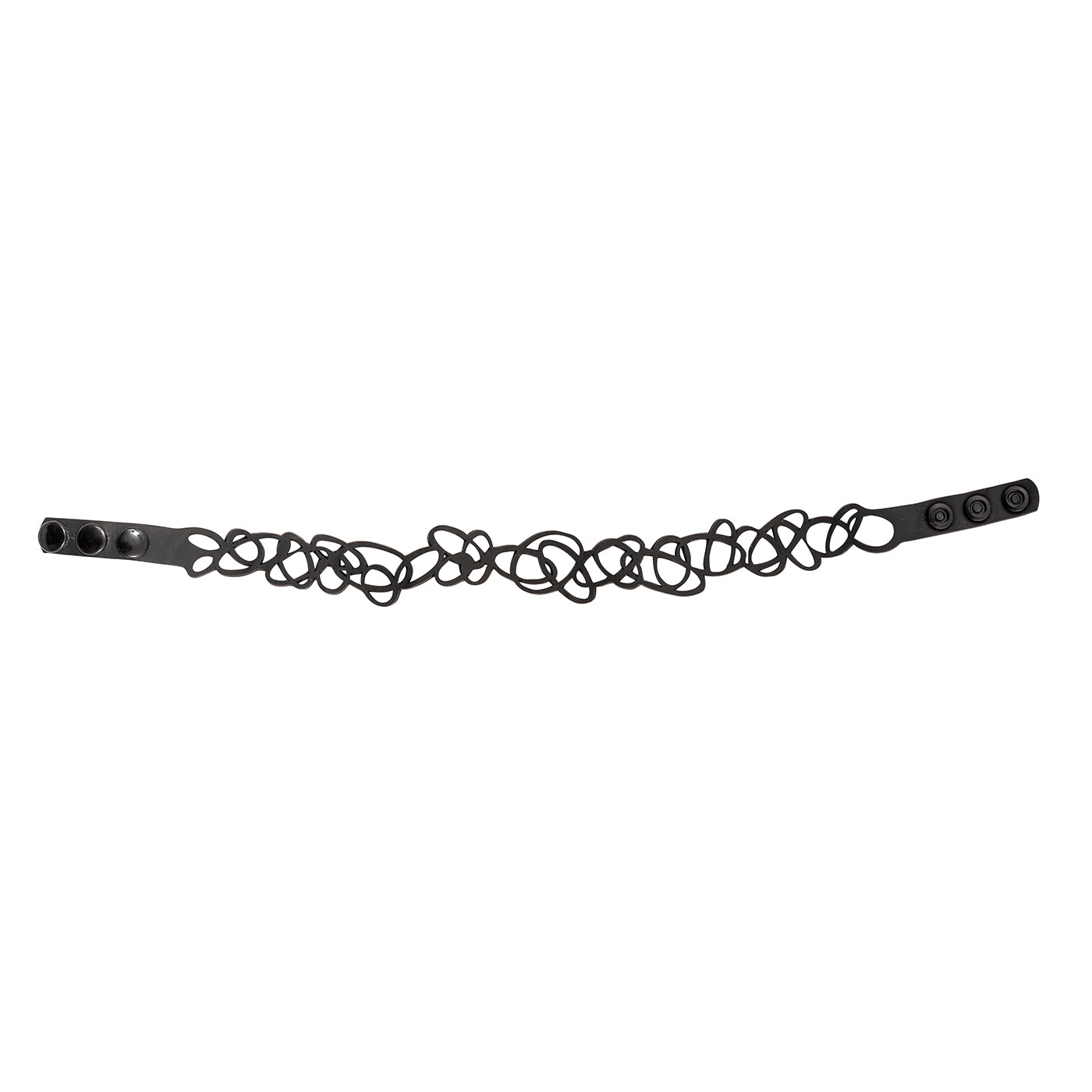 The recycled rubber is retrieved from old industrial printing machines. When the printers reach the end of their lives, they will be broken up and sold for scrap. We reclaim the rubber belts and use them for jewellery instead. With variations in texture and colour, all of the pieces are unique.
