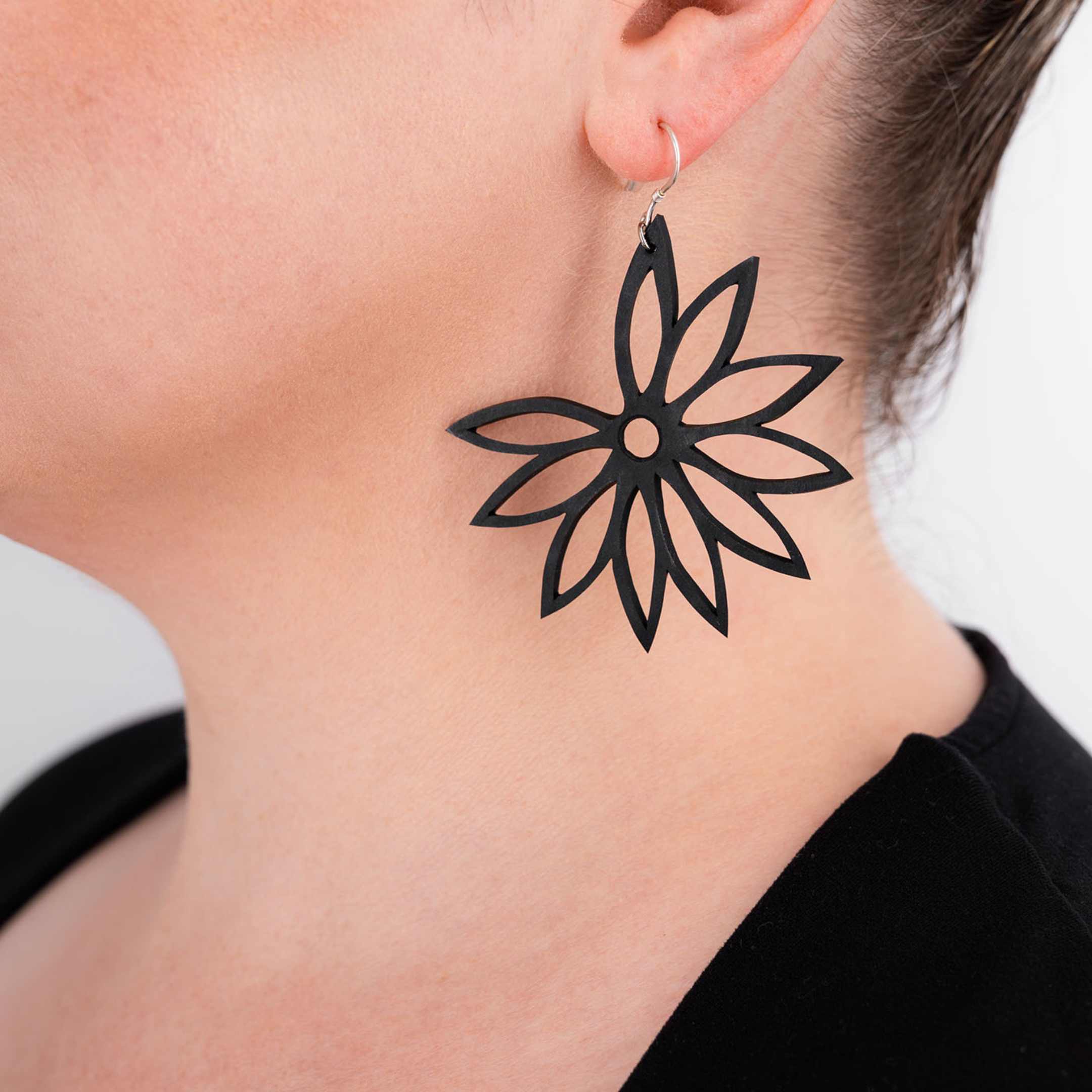 The recycled rubber is retrieved from old industrial printing machines. When the printers reach the end of their lives, they will be broken up and sold for scrap. We reclaim the rubber belts and use them for jewellery instead. With variations in texture and colour, all of the pieces are unique.