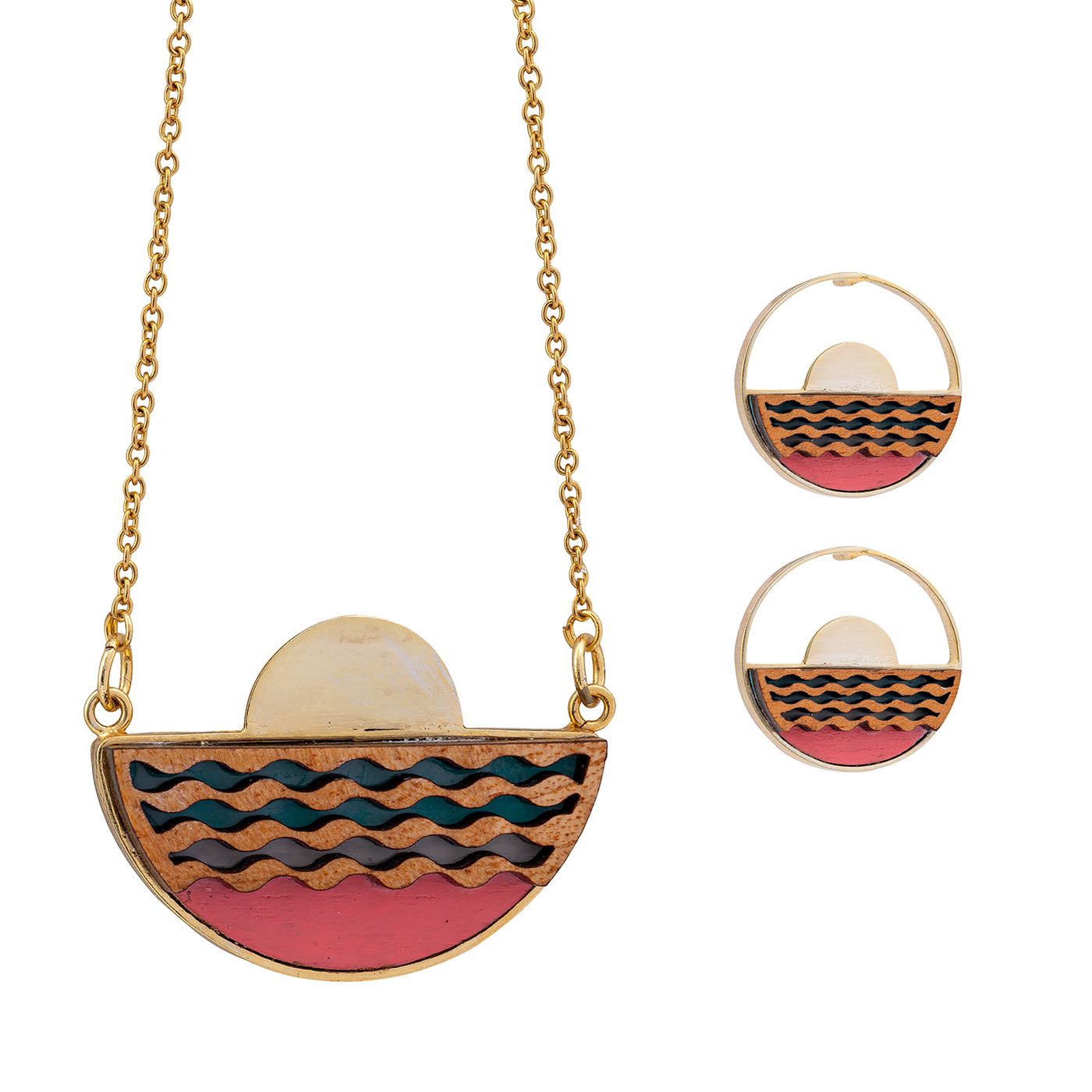 Our artisans have salvaged offcuts of oak, teak and mahogany from the furniture industry to create their elegant range of jewellery. Their designs perfectly combine the shade and grain of the wood with natural colours and metal accessories.