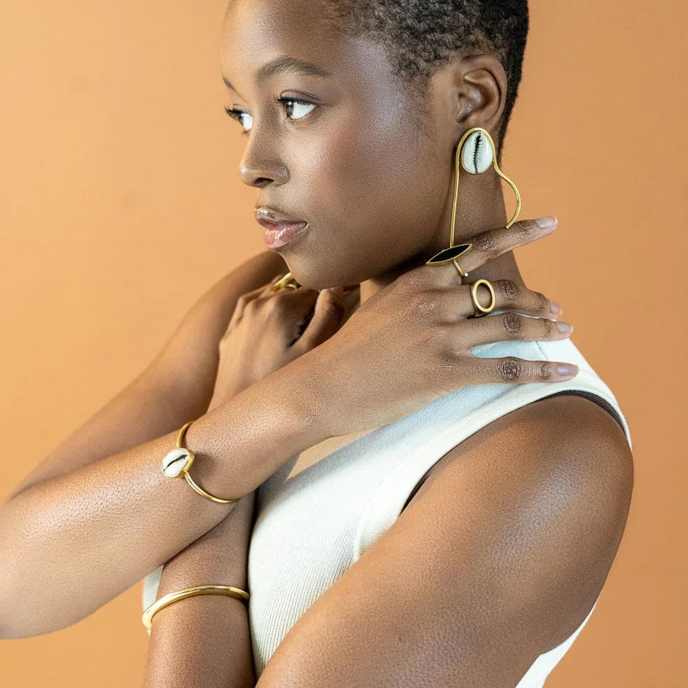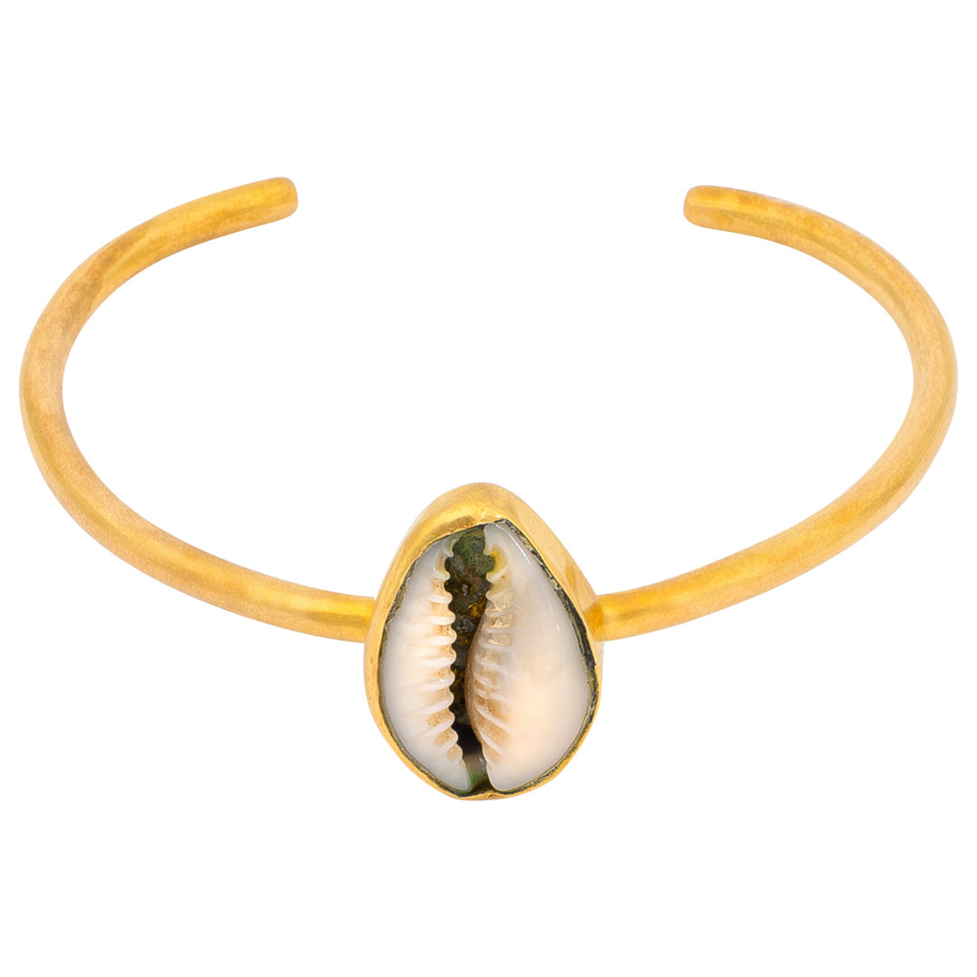 Cowrie Shell Recycled Brass Adjustable Bangle